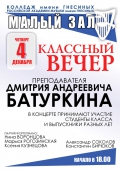 четверг |  | Классный вечер преподавателя Батуркина Д.А.