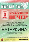 четверг |  | Классный вечер преподавателя Батуркина Д.А. (вокал)
