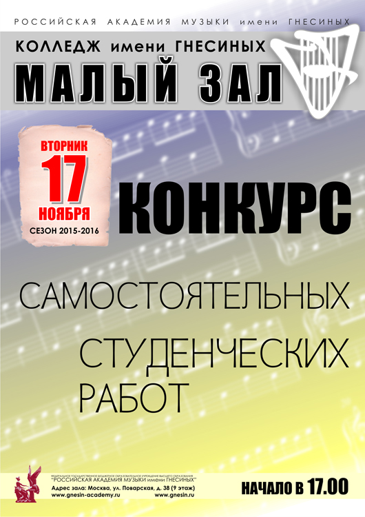 понедельник |  | Вечер памяти преподавателя Колледжа, заслуженного работника культуры России И.И.Савиной