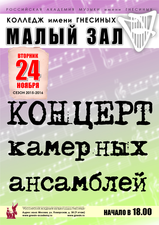вторник |  | Концерт камерных ансамблей