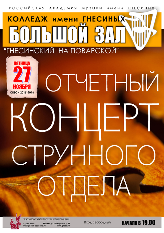 пятница |  | Отчетный концерт Струнного отдела Колледжа