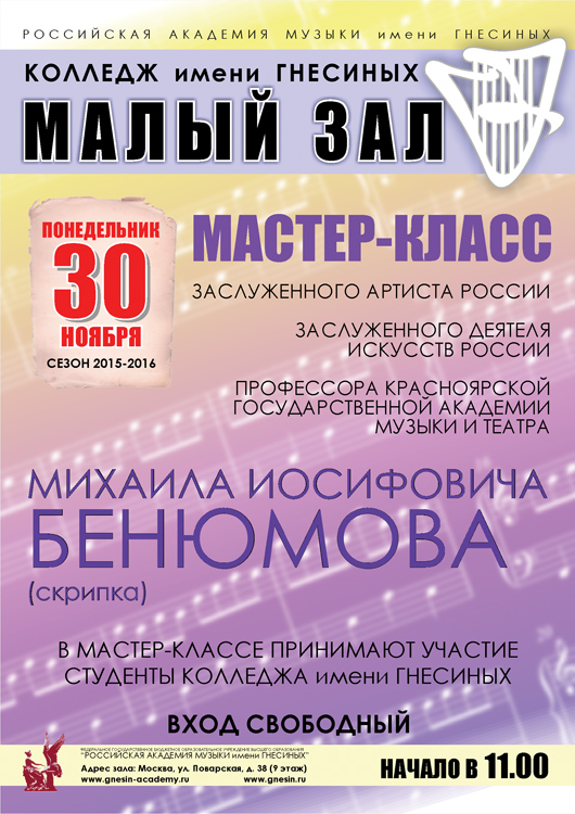 понедельник |  | Мастер-класс профессора Бенюмова М.И. (скрипка)