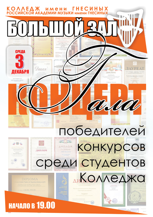 среда |  | Гала-концерт победителей конкурсов среди студентов Колледжа