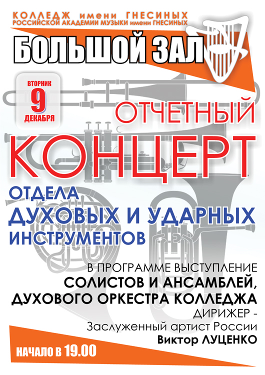 вторник |  | Отчетный концерт отдела «Духовые и ударные инструменты»