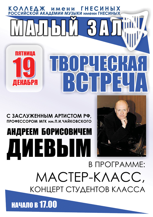 пятница |  | Творческая встреча с Заслуженным артистом РФ Андреем Диевым