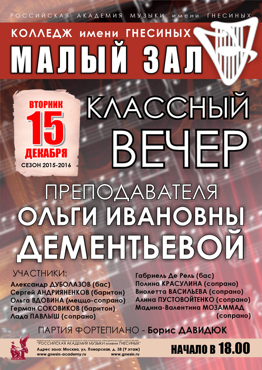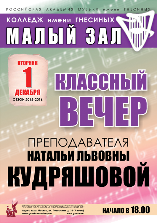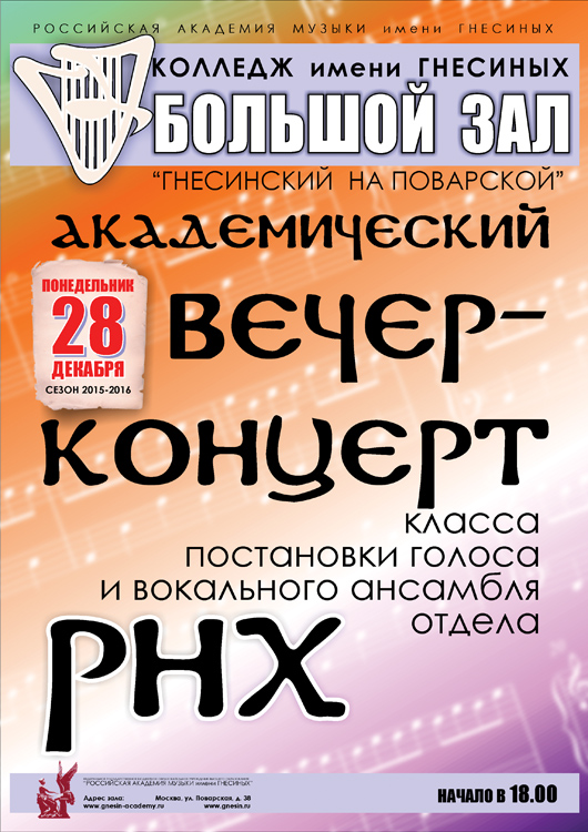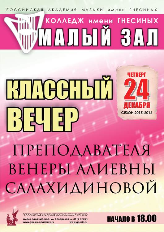 пятница |  | Концерт «Рождество у Гнесиных»