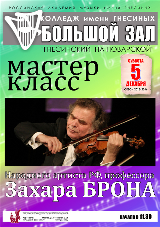 суббота |  | Мастер-класс народного артиста России, профессора Захара Брона