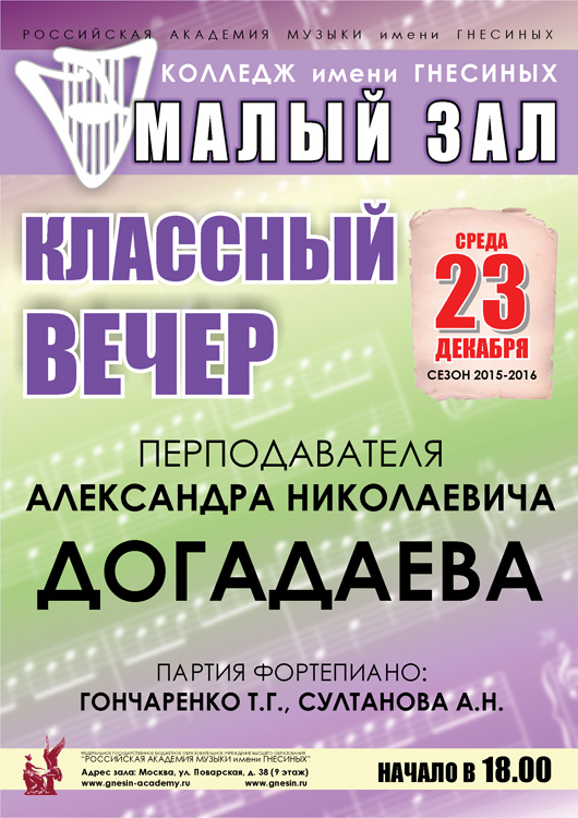 среда |  | Классный вечер Догадаева А.Н. (скрипка)