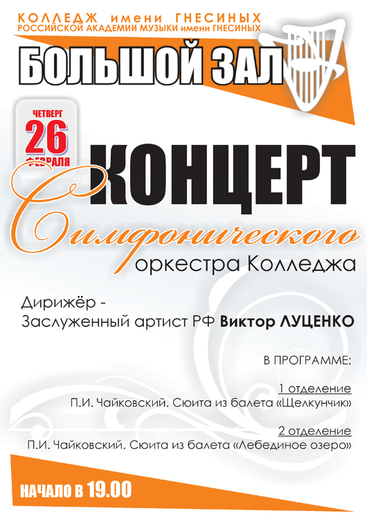Уважаемые коллеги! Заказать изготовление афиш концертов, проводимых в рамках концертной практики Музыкального училища имени Гнесиных, Вы можете по данной ссылке или в диспетчерской Училища. Убедительная просьба оформлять заказ не позднее 30 дней до даты проведения мероприятия