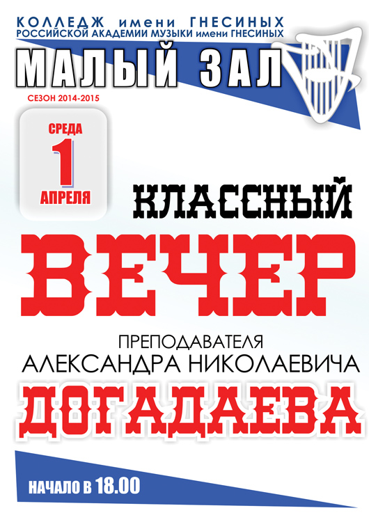 среда |  | Классный вечер преподавателя А.Н.Догадаева (скрипка)