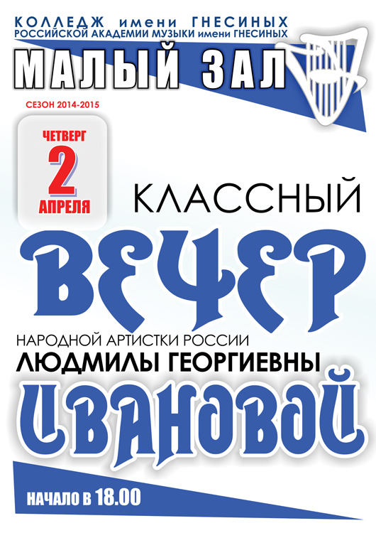 четверг |  | Классный вечер Народной артистки РФ Л.Г.Ивановой (вокал)