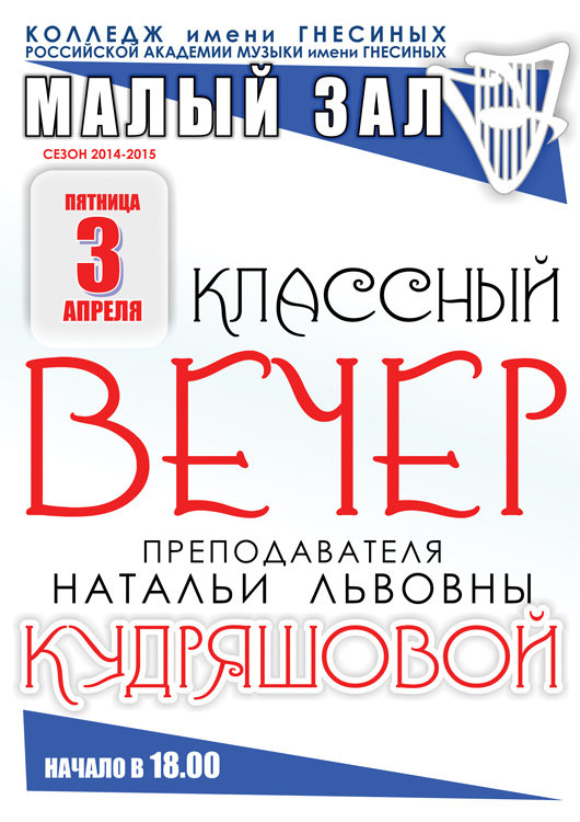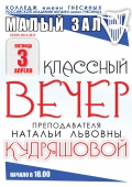 пятница |  | Классный вечер преподавателя Н.Л.Кудряшовой (фортепиано)