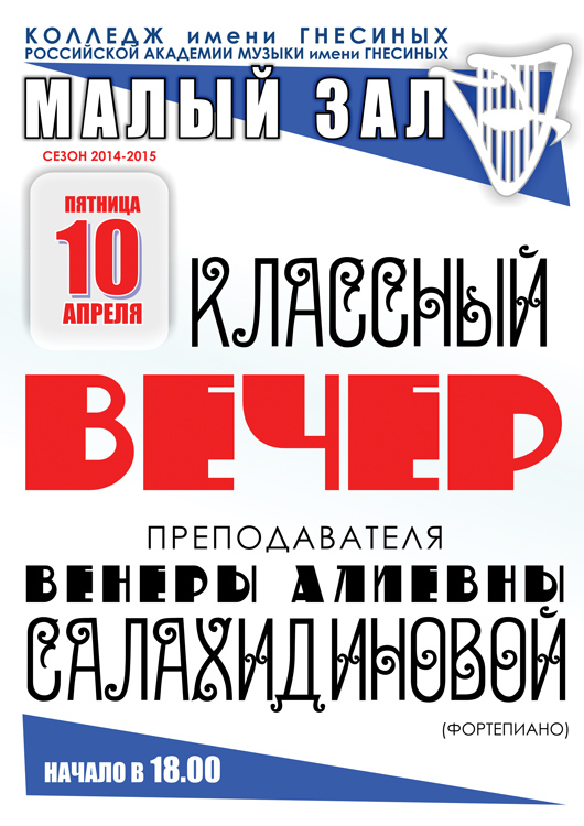 пятница |  | Классный вечер преподавателя В.А.Салахидиновой (фортепиано)
