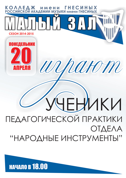понедельник | Академический вечер студентов 3 курса специальности «Народные инструменты» |