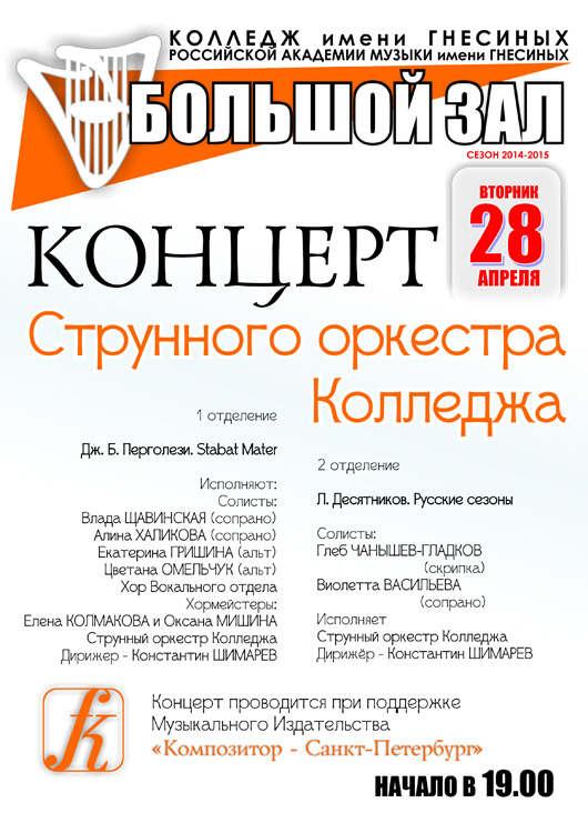 среда | Академический вечер студентов специальности «Струнные инструменты» |