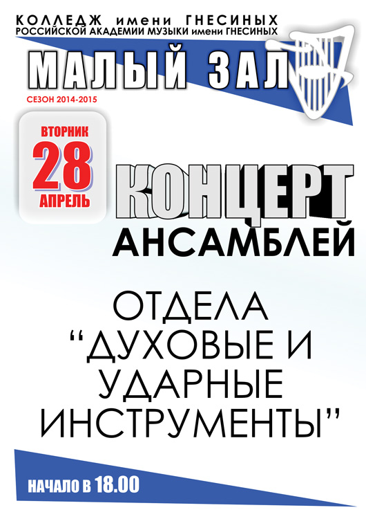 вторник |  | Концерт ансамблей отдела «Духовые и ударные инструменты»