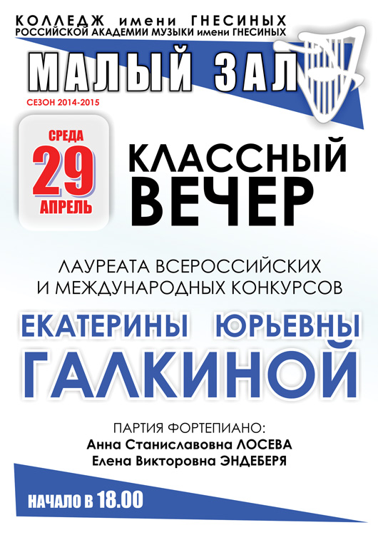 среда |  | Классный вечер преподавателя Е.Ю.Галкиной (виолончель)