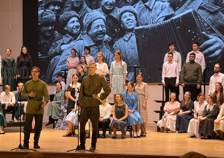 Песни военных лет – живая, звучащая история. Проходят годы, десятилетия, поколения сменяют друг друга, но память о Великой Войне и Великой Победе не умирает, пока эти песни, такие близкие и родные каждому - ведь нет такой семьи, которую бы не затронула война, песни, которые пели еще наши деды и прадеды, поем мы – их внуки и правнуки. В концерте приняли участие студенты отделов вокального искусства, сольного народного пения и инструментов народного оркестра. Благодаря мастерству исполнителей, их эмоциональной вовлеченности в происходящее, весь зал был охвачен волнующей и торжественной атмосферой, ощущением причастности к «героям былых времен», к людям, любившим свою страну, верившим в победу, приближавшим её всеми силами и отдавшим во имя нее жизнь, к людям, ненавидевшим войну и желавшим скорее вернуться домой к семье, к мирному созиданию своего будущего. В музыку концерта точно и выразительно были вплетены стихи, с большим чувством прочитанные Анной Чернявской. Настоящей же кульминацией вечера стал подлинный, живой голос военного времени - со сцены прозвучали письма Я. П. Островского, деда Елены Игоревны Колмаковой, героически погибшего, защищая свою Родину.