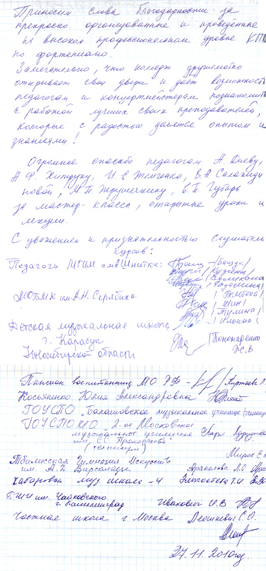 С 19 ноября по 27 ноября 2010 года в Колледже прошли Курсы повышения квалификации для преподавателей ПЦК «Фортепиано». Аудитория КПК была представлена преподавателями Московского государственного института музыки имени А.Г. Шнитке, Московского областного базового музыкального колледжа им. Скрябина г. Электросталь, 1-го Московского областного музыкального колледжа г. Коломна, 2-ого Московского областного музыкального училища им. С.С. Прокофьева г. Пушкино, преподавателями ДМШ и ДШИ г. Москвы, Калуги, Калининграда, Хабаровска, Бердска, Карасузского р-на Новосибирской обл., Гимназии искусств г. Тбилиси.