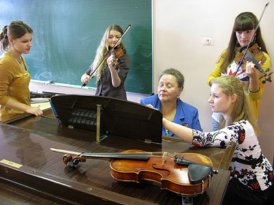 Презентация творческих работ студентов фортепианного отделения по сочинению музыки (Mалый зал ГМК - стилевые эскизы Никольской Ю., Спасского Б., Сафоновой А., Золотаревой Ю. и др.). - 1997 — Открытый урок: «Игра модуляций по гармонии студентами струнного отделения» (Салимов П.. Юрьева Т, Корзанов К., Маргогина М., Машукова М. и др.).