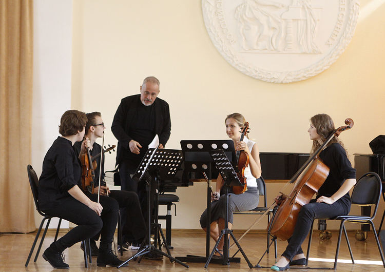 19 сентября студенты Струнного отдела Колледжа приняли участие в мастер-классе всемирно известного квартета из Швейцарии, который проходил в Малом зале учебного корпуса Академии имени Гнесиных.